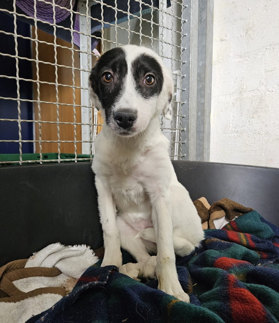 Julischka (geb. 26.11.2025), schwarz-weiß, ist die ruhige Seele des Trios. Noch zeigt sie sich etwas zurückhaltend, begegnet Menschen jedoch freundlich. Mit Artgenossen ist sie gut verträglich, wird hier jedoch leider von den beiden anderen, deutlich aufgeweckteren Hündinnen etwas unterdrückt.
