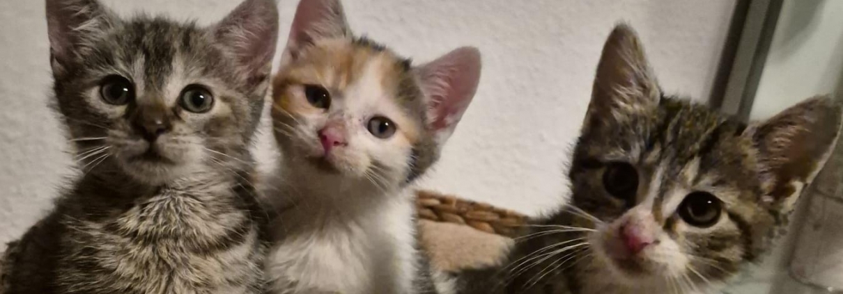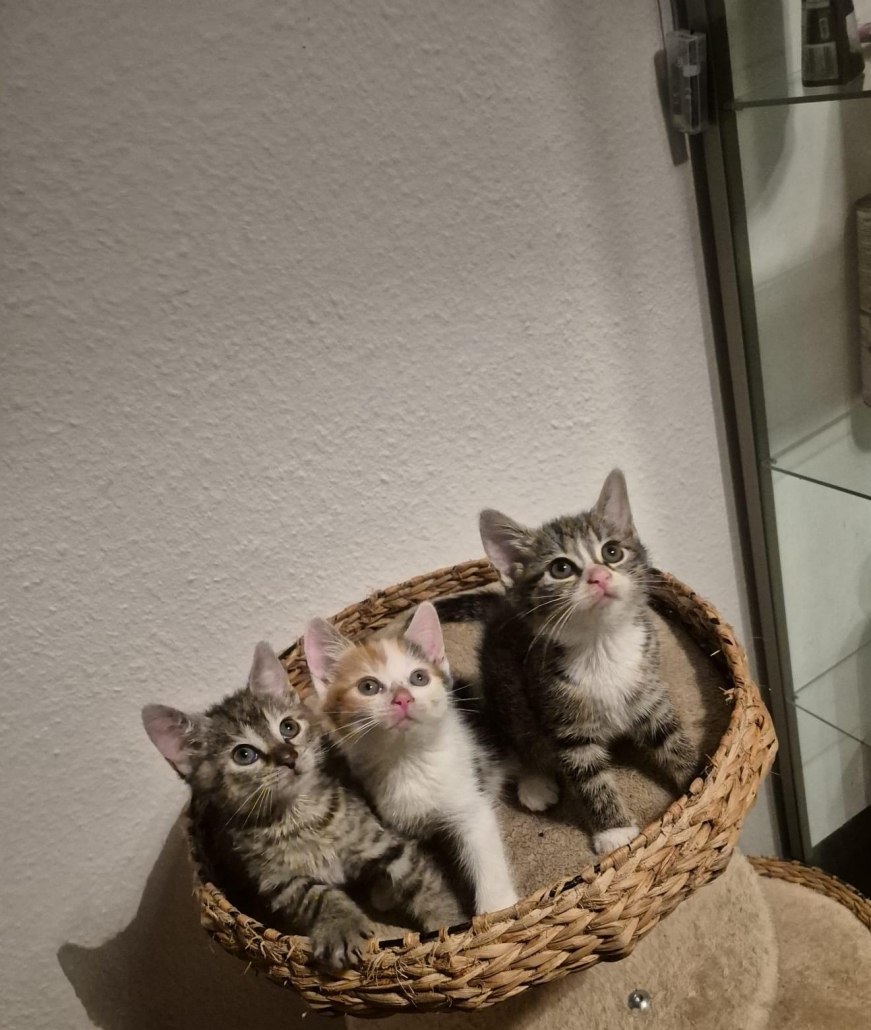 Die drei Kitten Cleo, Nona und Schnute sind ungefähr am 16.10.2025 geboren worden.