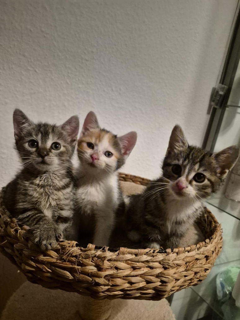 Die drei Kitten Cleo, Nona und Schnute sind ungefähr am 16.10.2025 geboren worden.