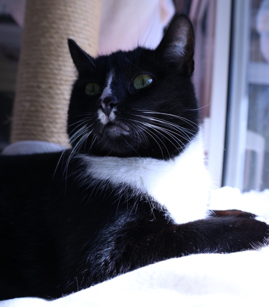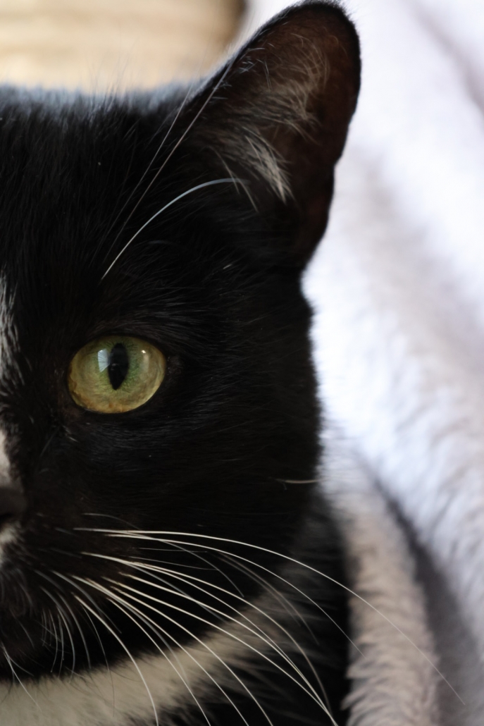 Geboren wurde ich 2022 und ich bin eine hübsche schwarz-weiße Katzendame mit einer ordentlichen Portion Persönlichkeit. Man sagt über mich, ich sei verspielt, lieb und ziemlich charmant. Stimmt auch… meistens zumindest.