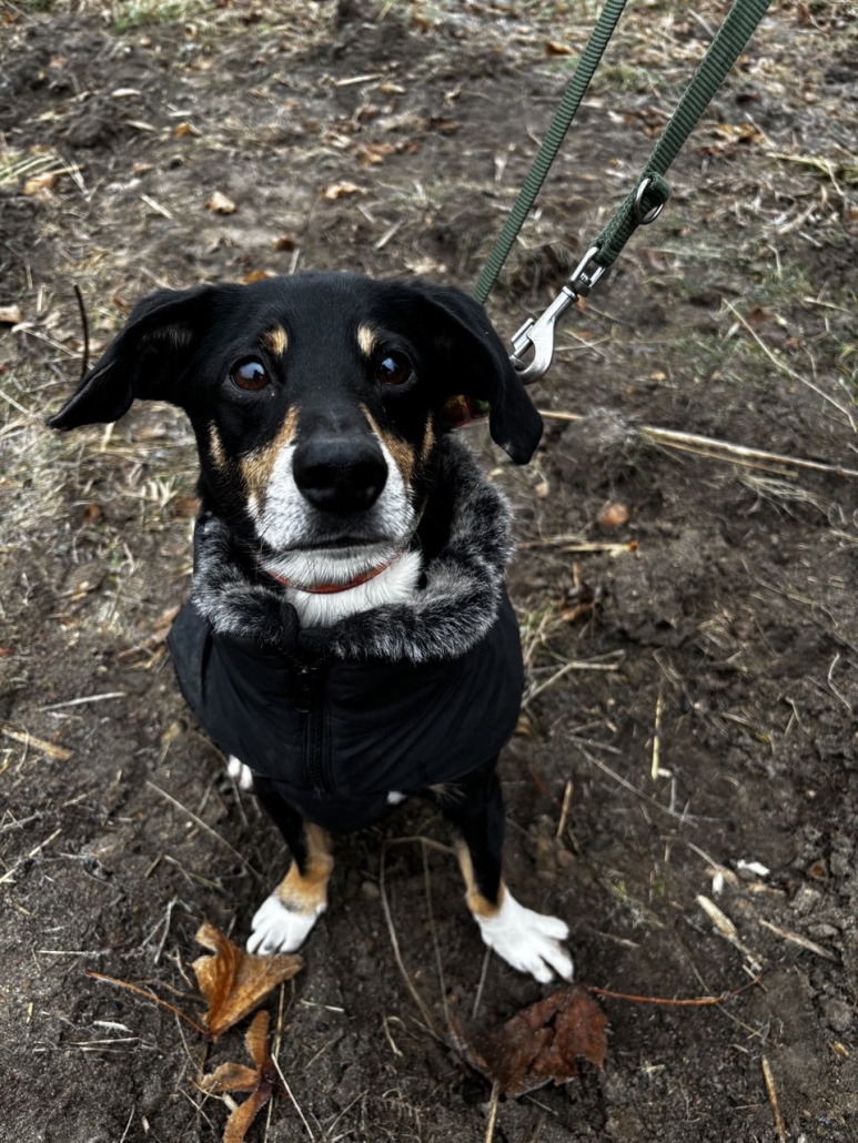 Auf Spaziergängen zeigt er sich neugierig und abenteuerlustig. Radfahrer, Jogger oder auch mal ein Hase können seinen Jagdinstinkt wecken, und bei Hundebegegnungen neigt er gern zum Pöbeln – hier braucht es also noch Training und klare Anleitung.