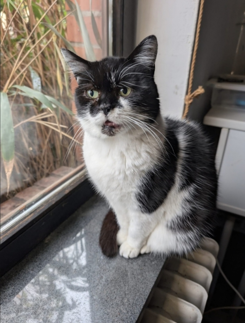 Geboren im Jahr 2012, lebt Münzi seit 2018 in einer liebevollen privaten Pflegestelle. Trotz mehrerer Antibiotikagaben ist der chronische Schnupfen geblieben. Inzwischen bekommt er keine Antibiotika mehr. Wenn die Symptome schlimmer werden, erhält er ein Immunaufbaupräparat und darf inhalieren, was ihm spürbare Erleichterung verschafft.
