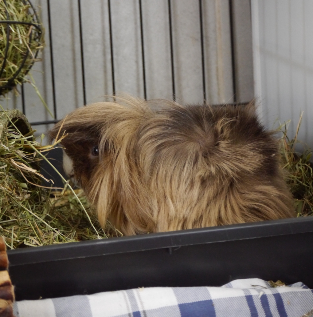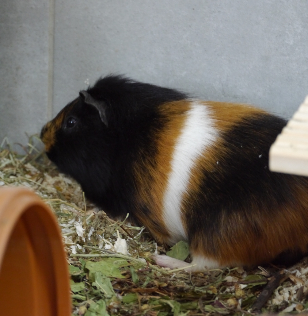 Charly(*2020), ein Glatthaarmeerschweinchen, wurde später mit der bestehenden Gruppe vergesellschaftet. Er hofft im neuen Zuhause von einer Meerschweinchen-Dame erwartet zu werden. Auch hier soll das Gehege artgerecht sein und eine liebevolle Pflege ermöglichen.