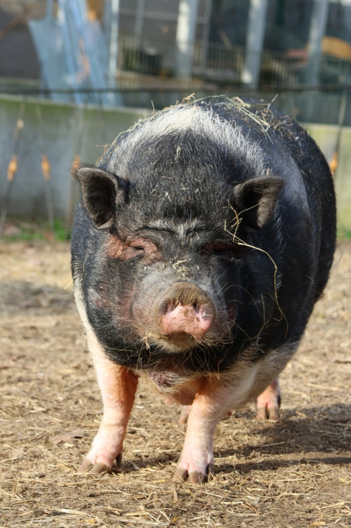 Susi ist eine bezaubernde Minischweindame, die genau weiß, was sie will. Geboren im August 2017, ist sie zwar noch jung, aber bereits eine echte kleine Prinzessin. Während sie sich gerne von ihrer Umgebung bewundern lässt, ist sie beim Thema Streicheleinheiten etwas wählerisch – Susi braucht Zeit, um Vertrauen zu fassen und mag es nicht immer sofort, wenn man sie kraulen möchte. Aber wenn man ihr Herz einmal erobert hat, genießt sie auch sanfte Zuwendungen.