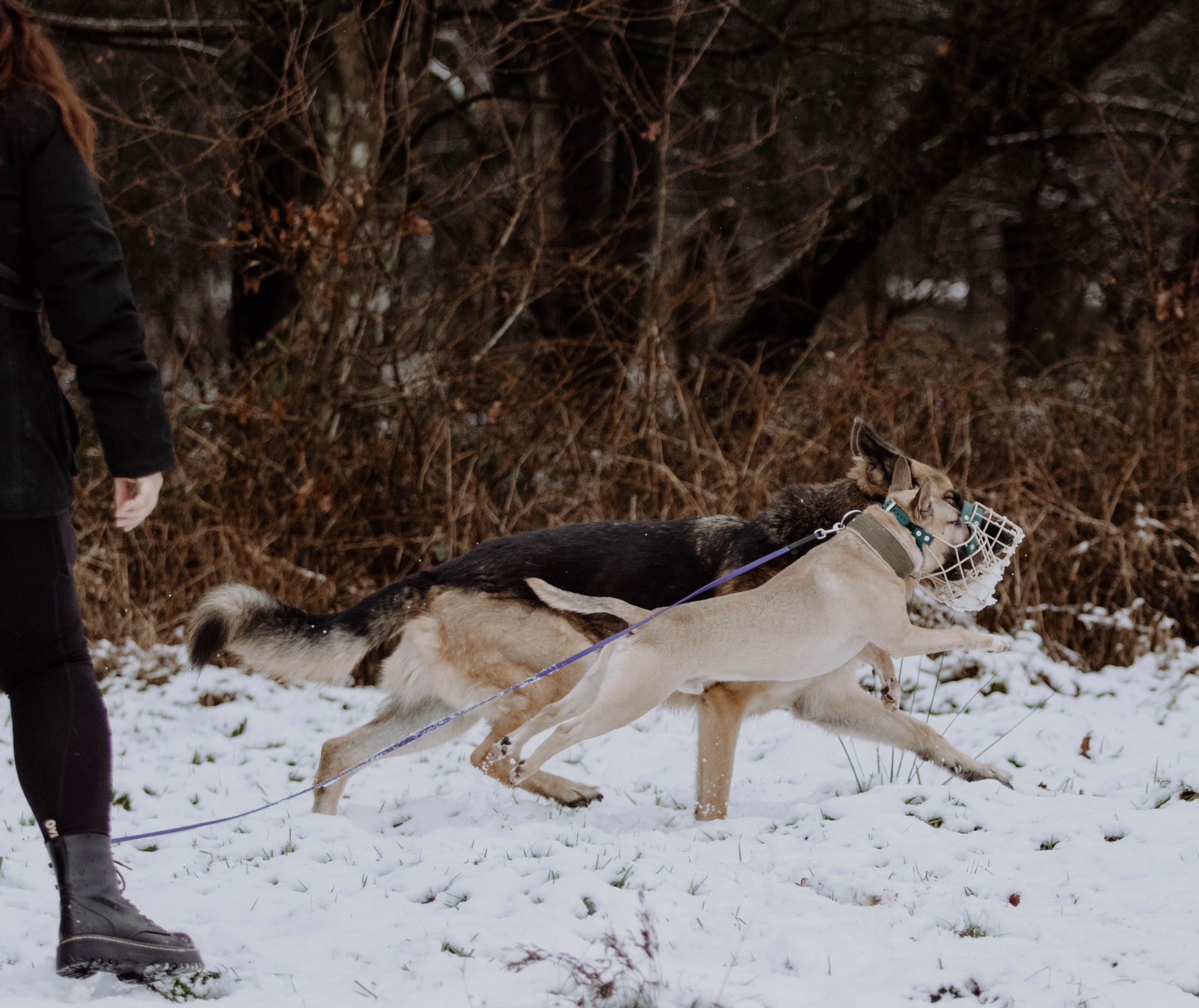 Maulkorb ausgeführt, da er das hündische Gegenüber ansonsten wohl schwer verletzen